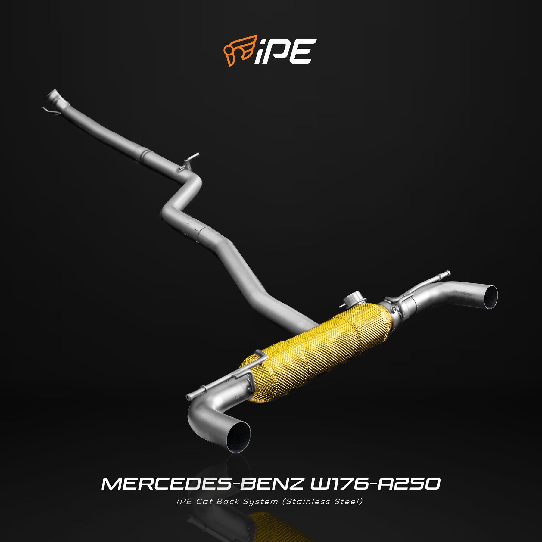 Each part of the exhaust system is individually designed to perfectly fit the A250. The iPE exhaust is 6.66 kg lighter than stock, which translates to an 25% weight reduction. Our unique design overcomes the limits set by the stock exhaust, so that performance, sound, and driving pleasure can be increased dramatically.